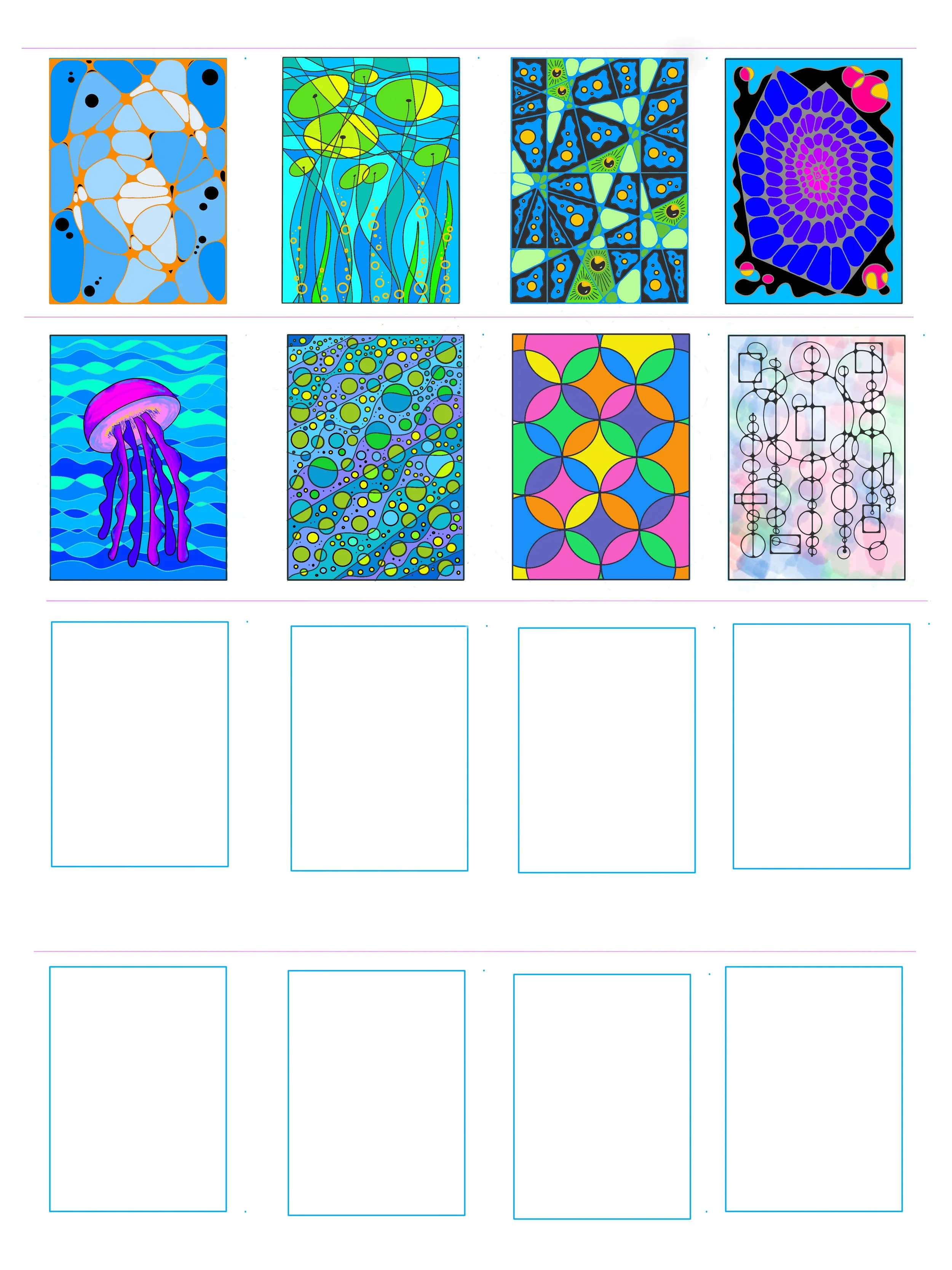 I practiced a lot on Sketchbook Pro digitizing my 2023 Meow Bun and 2024 Black Cat Does Stuff linocut posters into sticker sheets. Then participated in the Annual Game of Shrooms event by making stickers and painting rocks; dropping off the packets along the Richmond Marina Bay waterfront promenade. My other projects in Sketchbook Pro were doing some isometric drawings for another coloring book which will be called Bunny Adventures and creating colorful tangle stickers.